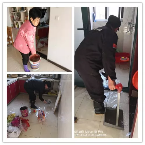 此时,402室业主发现邻居家跑水,二话不说拿起工具就加入了“战斗”队伍,一起帮忙清理积水。在物业工作人员和邻居们的共同努力下,经过1个多小时的忙碌,终于把积水清理干净。因援助及时,业主家中除地板被浸泡外,并无大的损失,也及时避免了其他楼层隐患。最后工程人员进行故障排查,跑水是因业主家中室内角阀损坏所致。工程人员已为其更换新的角阀,及时消除了安全隐患。业主王女士感动地说:真是太感谢大家了,如果不是有这些好邻居好物业,我收拾一天也收拾不好。项目经理高升轩谦虚地说,这都是我们物业应该做的。