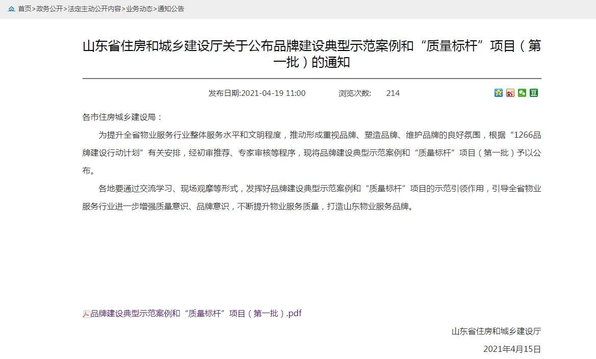 根据山东省住房和城乡建设厅发布的《关于公布品牌建设典型示范案例和“质量标杆”项目(第一批)的通知》,根据“1266品牌建设行动计划”,经初审推荐、专家审核等程序,山东银湾物业集团有限公司入选全省首批次品牌建设典型示范案例,为菏泽市唯一首批次入选企业;港湾新城、鼓楼广场物业项目入选全省首批次“质量标杆”项目。据悉,首批次优选牌建设典型示范案例共30个,“质量标杆”项目共157个。