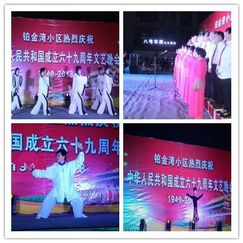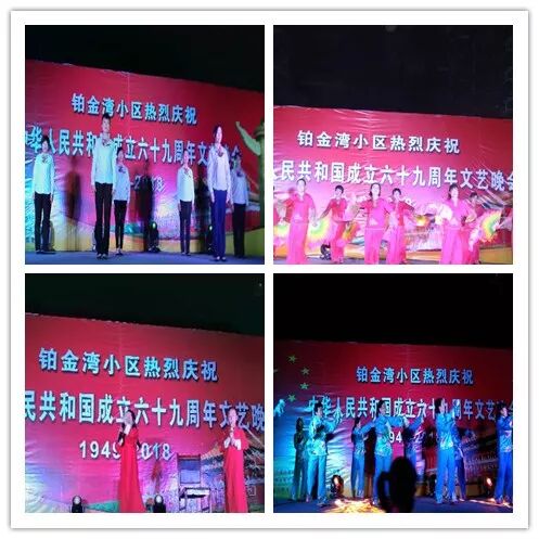 山欢水笑日月增辉,物阜民康普天同庆。为庆祝伟大祖国69岁华诞,9月29日晚,铂金湾小区举办了以“共建和谐•幸福邻里.共筑中国梦”为主题的迎国庆文艺晚会。本次活动由单县园艺街道办事处、单县物业管理办公室主办,银湾集团铂金湾物业管理处承办,单县铂金湾小区党支部和单县志愿者联合会协办。活动现场有幸邀请到园艺街道办事处、单县志愿者联合会等相关领导。集团公司董事长李如燕、总经理吕昌文、集团公司物业事业一部总经理牛汝花领导同志到场陪同观看。