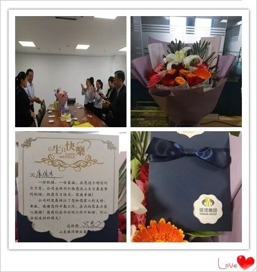 为进一步营造企业以人文本的文化氛围,集团公司人力资源部关心关爱员工,在员工生日这天,精心定做由集团公司总经理签字签名的生日蛋糕和鲜花,并送去真诚的生日祝福,对员工的辛勤工作给予肯定和感谢,让每位员工充分感受到集团公司大家庭的温暖与关怀。