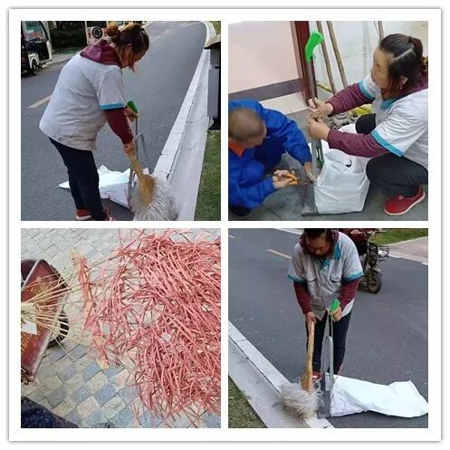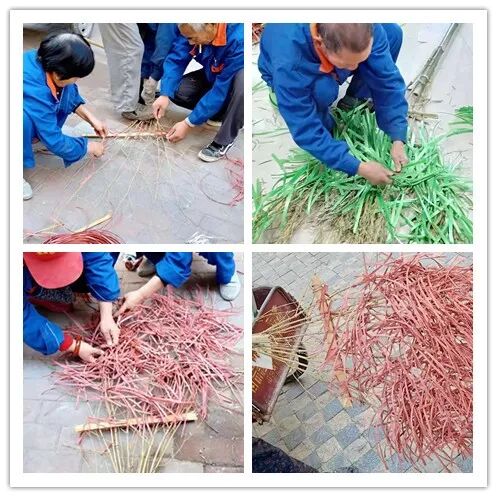 另外,他们还对扫帚进行了巧妙的改装,废弃的大扫帚都被他们个个系上了塑料经子。按照公司规定,常规的物资配备是每半年发放一次大扫帚,但长期使用后,因大扫帚的使用频率较高,普遍情况下不到半年时间就会需要更新,导致更换周期缩短,无形当中就增加了成本。在马瑞红主管的带领下,全体保洁员们积极收集平时使用废弃的大扫帚,进行加固修整后,在稀疏的枝杈上系上密密麻麻的塑料经子,这样的新扫帚既经久耐用、轻便,保洁员们扫出来的地儿还干净。