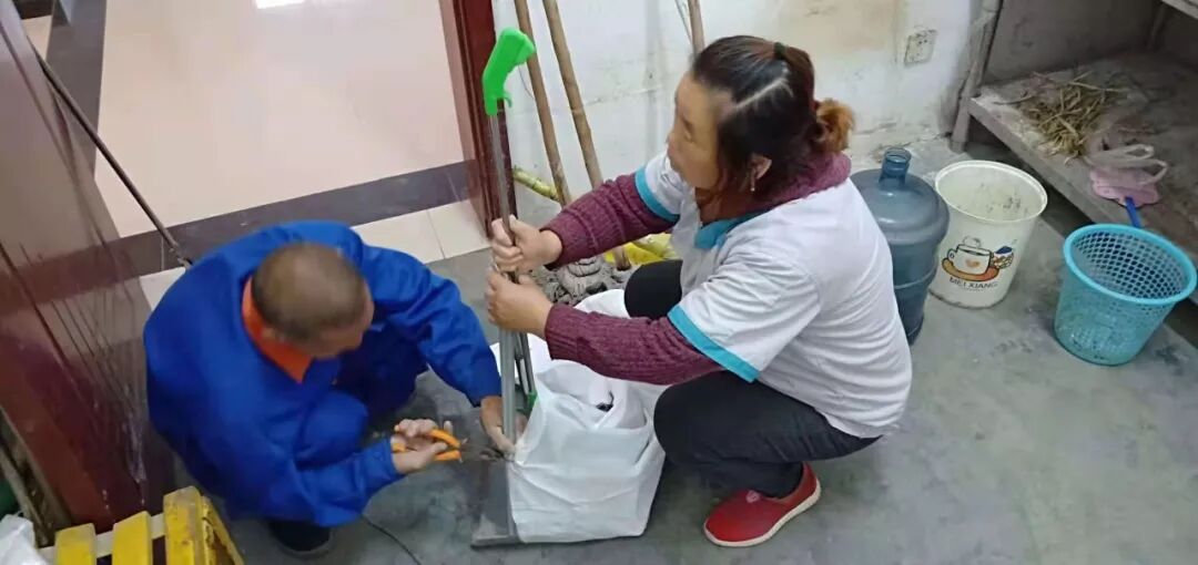 近日,集团公司港湾新城小区里的保洁员,个个成了“发明家”。在港湾新城保洁主管马瑞红的带领下,保洁工人正常使用后废弃的拖把杆、垃圾夹杆、废弃簸箕都成了他们手中的宝贝,一时间保洁员们手里多了很多新“武器”。