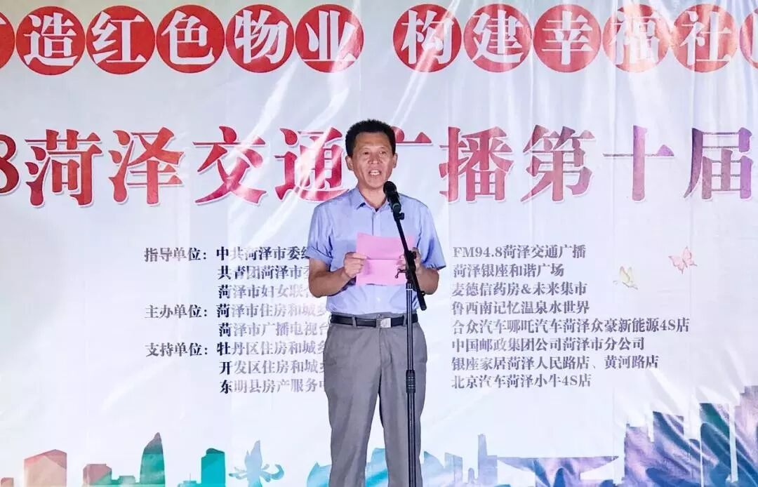 为进一步营造温馨和谐的居住氛围,8月14日晚7时30分,菏泽市第十届邻居节文艺巡演抵达丰海御龙湾站,上演了以打造“红色物业构建幸福社区”为主题的丰富多彩的文艺活动。东明县委组织部副部长张洪宇,东明县委宣传部副部长韩富生,东明县房地产服务中心主任权卫平、副主任郝云,以及东明县电视台,城区、城东公安派出所、环保所等有关同志莅临活动现场。山东银湾物业集团董事长李如燕,丰海御龙湾小区党支部有关同志参加了活动。