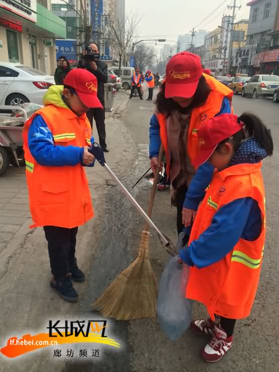 长城网廊坊1月21日讯(记者 孙泽恒鞠彦娜)1月21日,正是寒冬最冷的时候,天空还飘起了雪花,而在河北香河淑阳大街上一群带着爱心红帽穿着环卫衣服的爱心人士,拿着自己准备的扫帚、簸箕在大街上做起了“环卫工人”。